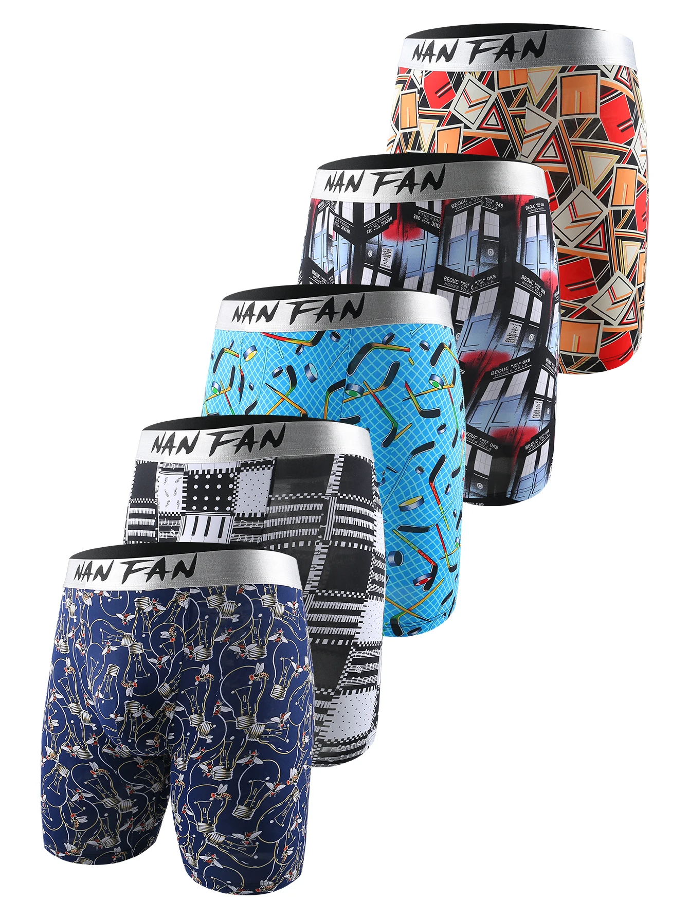 ملابس داخلية رجالية من Nan Fan، تتميز بطباعة حريرية جليدية، مصممة لمقاومة الاهتراء، ومناسبة للرياضة والجري، متوفرة بتصميم رباعي الزوايا مع بنطال طويل ذو زاوية مسطحة.