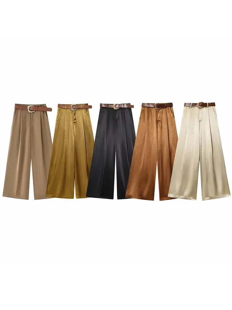 بنطلون نسائي كاجوال من TRAF، تصميم جديد وعصري، بقصة فضفاضة مع حزام، مثالي لإطلالة أنيقة ومريحة.