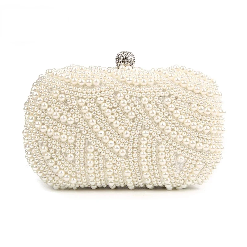 حقيبة يد مسائية جديدة بتصميم لؤلؤي، مثالية لحفلات الزفاف والمآدب، متوافقة مع فساتين السهرة والشيونغسام، مع سلسلة وحزام كتف.