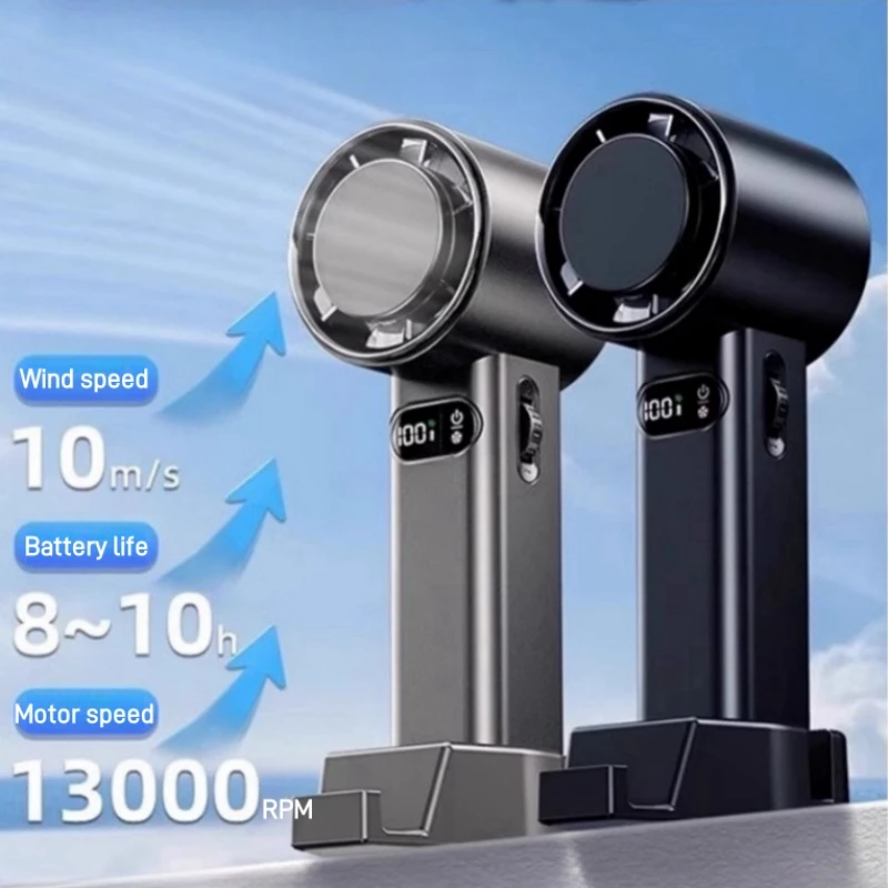 مروحة تبريد كهربائية محمولة، تعمل بتقنية أشباه الموصلات، سهلة الحمل باليد، قابلة للشحن عبر منفذ USB، مثالية لتبريد الهواء أثناء السفر أو في الأماكن المفتوحة، بسعة بطارية 4800 mAh.