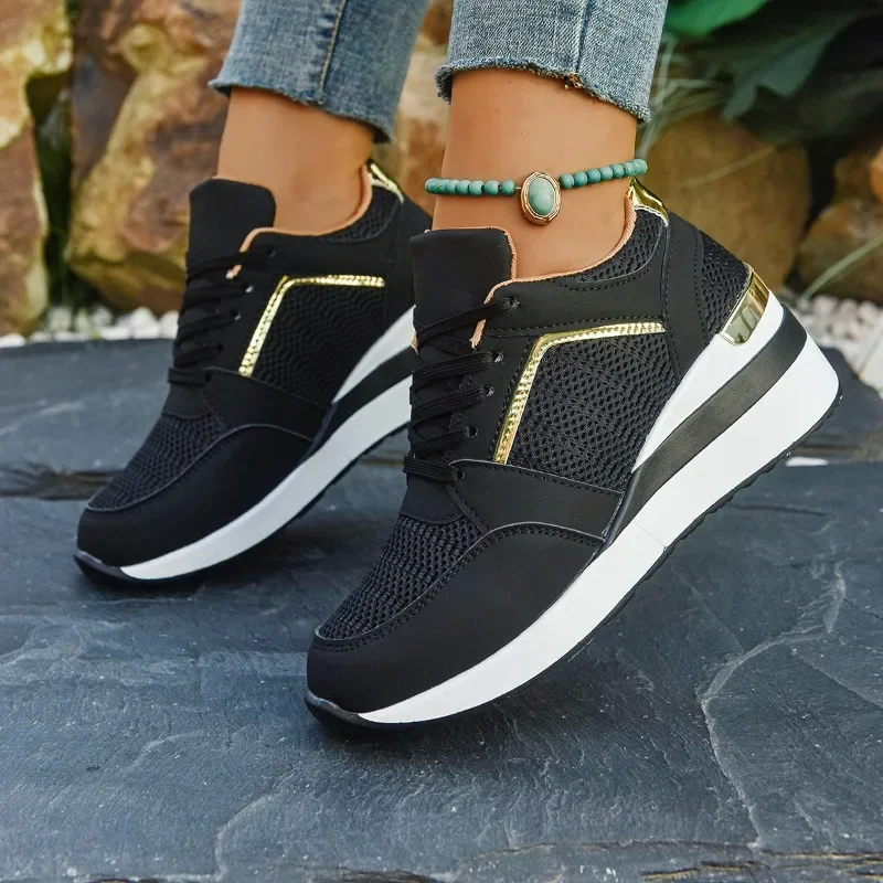 حذاء نسائي كاجوال لعام 2025، يتميز بتصميم عصري مستوحى من أزياء الشارع، مع رباط أمامي يوفر راحة مثالية. هذا الحذاء الرياضي ذو النعل السميك مصمم خصيصًا للسيدات.