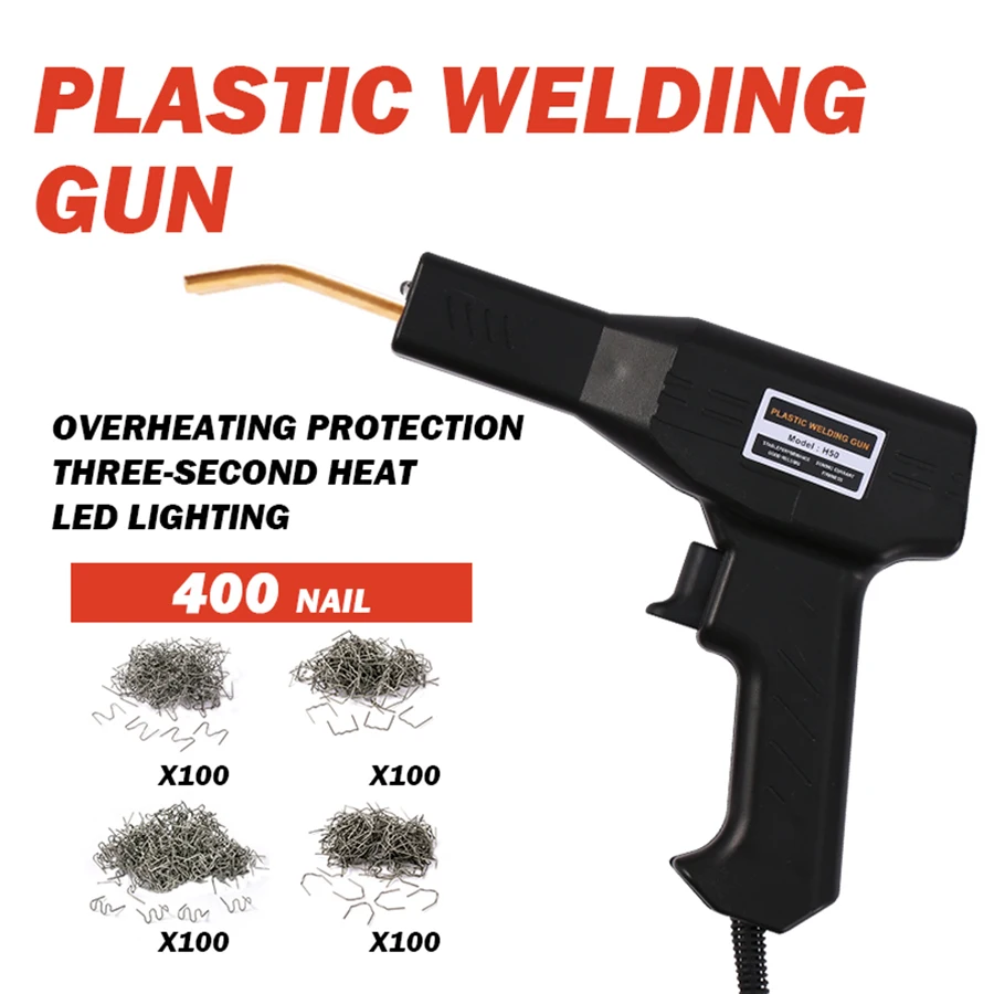 جهاز لحام بلاستيك أسود بقدرة 50 واط، مزود بأربعة رؤوس لحام لإصلاح التشققات، أداة فعّالة للمرائب وورش العمل، متخصصة في لحام أنابيب الـ PVC.