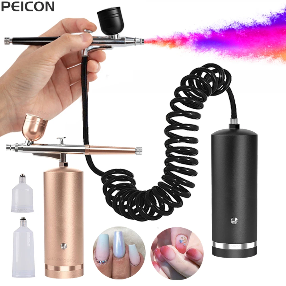 البخاخة مع ضاغط البخاخة المحمولة، مسدس رش الأظافر لفن الأظافر، اللوحة الحرفية، آلة الأظافر مع ضاغط.