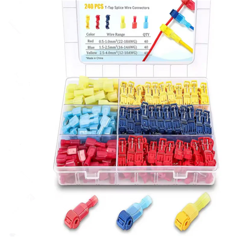 120/240 قطعة من موصلات الأسلاك الكهربائية المعزولة للذكور، وصلات سريعة التوصيل ذاتية التعرية من نوع T.