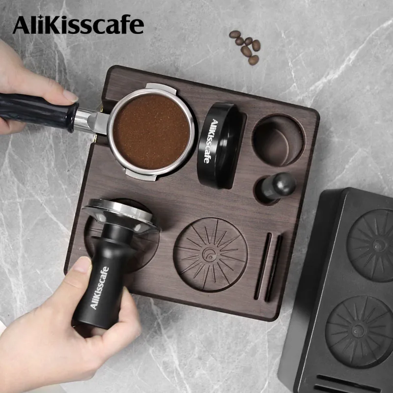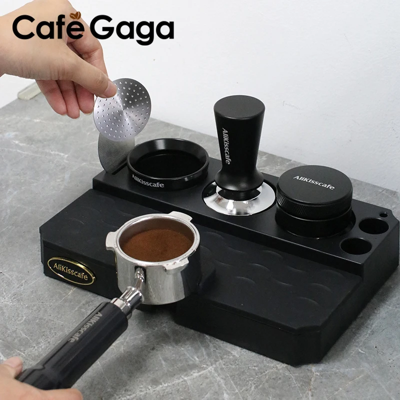 AliKisscafe محطة كبس القهوة Portafilter حامل درج تخزين لأدوات باريستا إسبرسو بقطر 51 مم، 54 مم، 57 مم، و 58 مم.