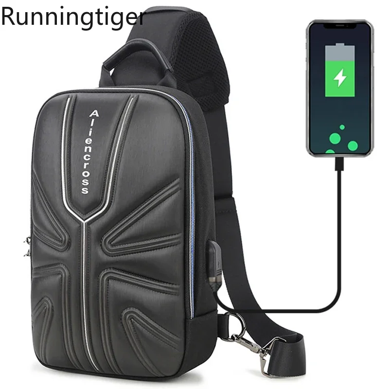 حقيبة كتف رجالية متعددة الوظائف مزودة بمنفذ USB ومضادة للسرقة، مصممة للرجال كحقيبة كروس، وحقيبة سفر بحمالة صدر، وحقيبة ساعي بريد للرجال