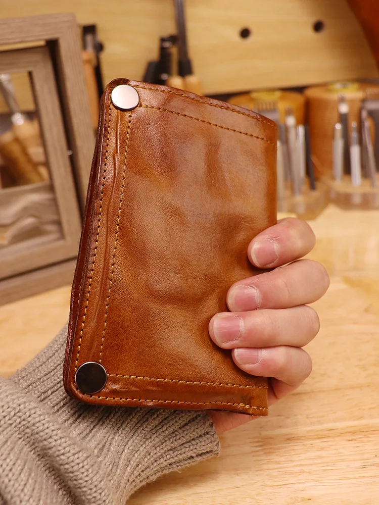 محفظة جلدية أصلية للرجال، بتصميم كلاسيكي ثنائي الطي، مع جيب للعملات المعدنية بسحاب، وحامل لبطاقات الائتمان.