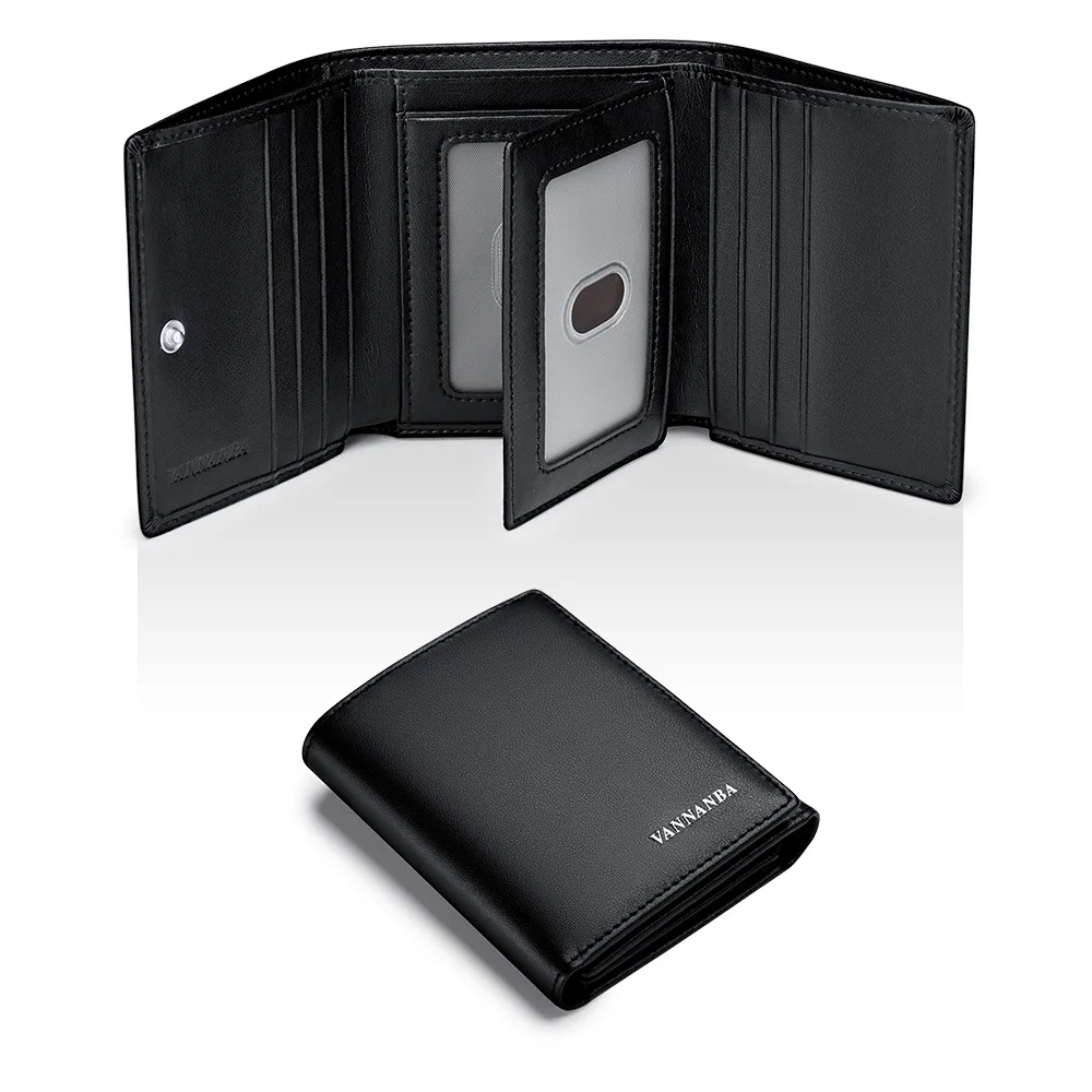 VANNANBA - محافظ جلدية سوداء للرجال بتصميم ثلاثي الطي، تتميز بحماية من تحديد الهوية بعلامات تجارية، وتصميم أنيق وعصري.