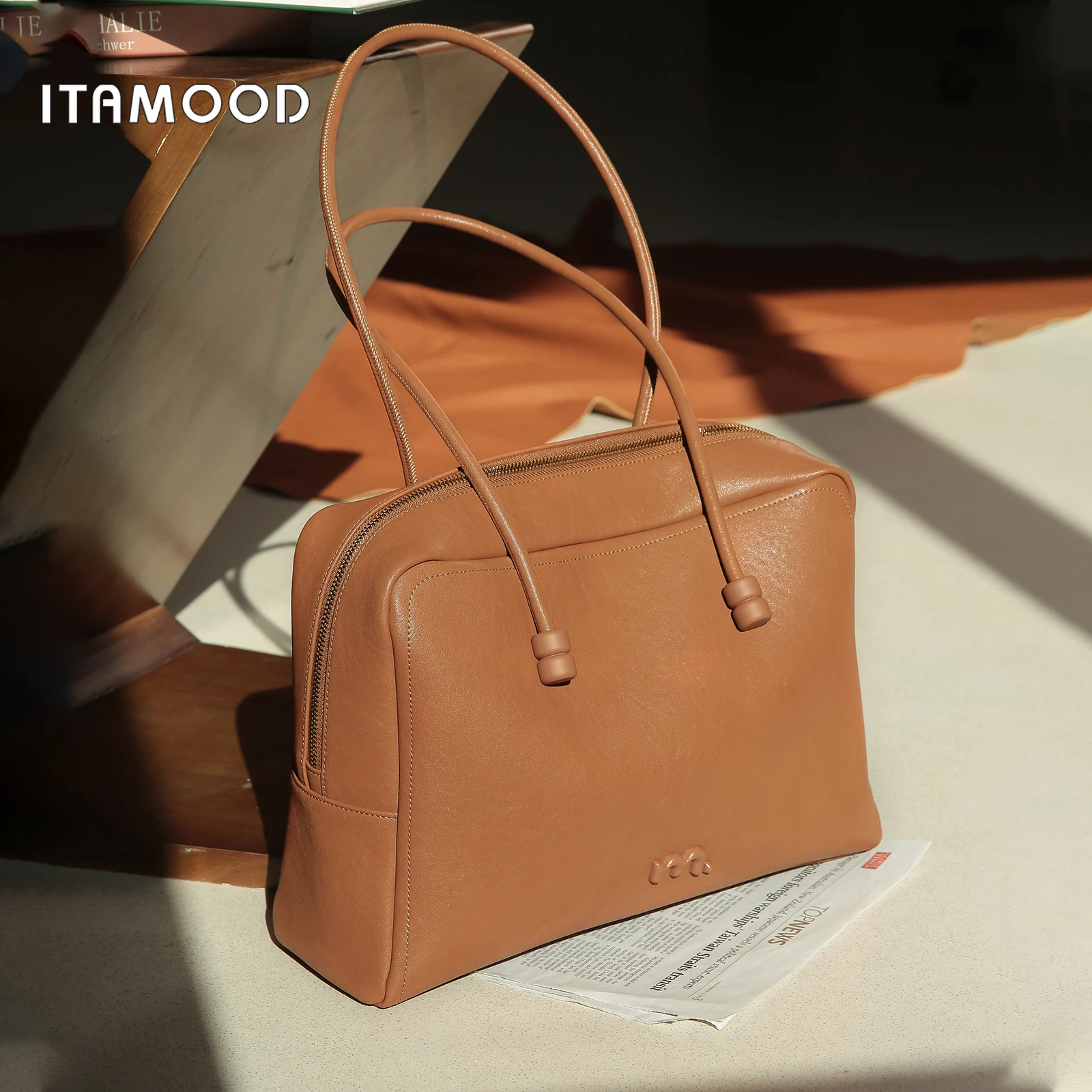 حقيبة "ITAMOOD" المتطورة ذات السعة الكبيرة بتصميم بوسطن، حقيبة عصرية للتنقل، بسيطة، حقيبة جلدية، حقيبة يد.