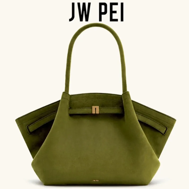 حقيبة "JW PEI" المصممة من جلد الغزال على شكل كعكة الزلابية، وهي حقيبة كتف فرنسية عصرية للنساء، تتميز بتصميم تحت الإبط ومقبض علوي أنيق.