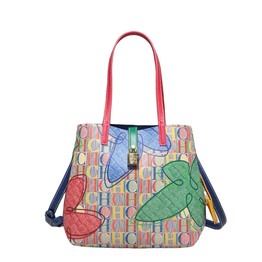 حقيبة كتف نسائية من تصميم CH، تتميز بتصميم بسيط على شكل جو، بالإضافة إلى حقيبة يد نسائية بتصميم مطبوع عليه حروف، مع حقيبة ركاب نسائية ذات سعة كبيرة.