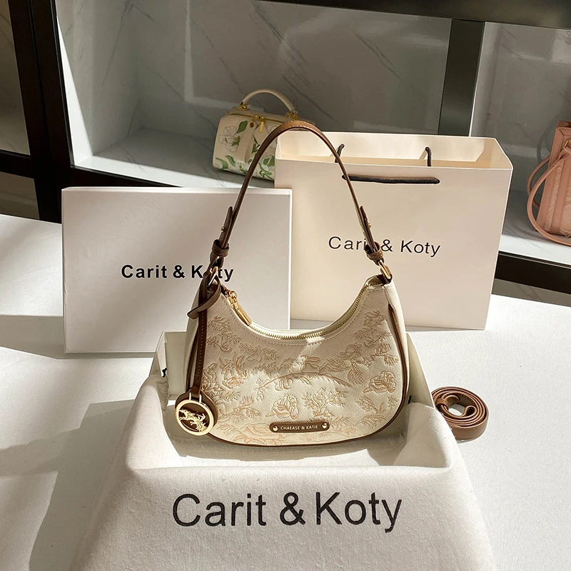 حقيبة هوبو لعام 2025، إلى جانب حقيبة كتف مزينة بتطريزات زهرية وحلية معدنية، تُقدم كحقيبة يد نسائية عالية الجودة للاستخدام اليومي.