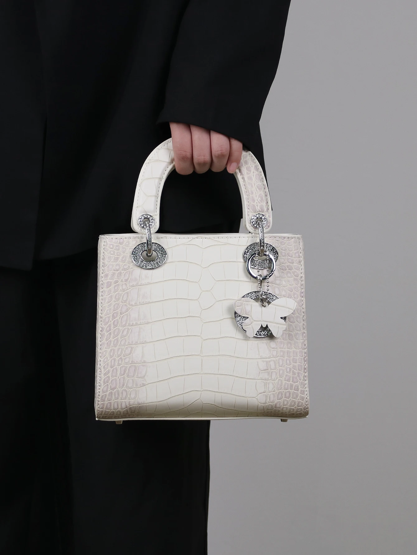 حقيبة يد تمساح جديدة عالية الجودة لعام 2025، بتصميم مستوحى من حقيبة أميرة الهيمالايا الماسية البيضاء، تجمع بين الأناقة الفاخرة والخفة في التصميم.