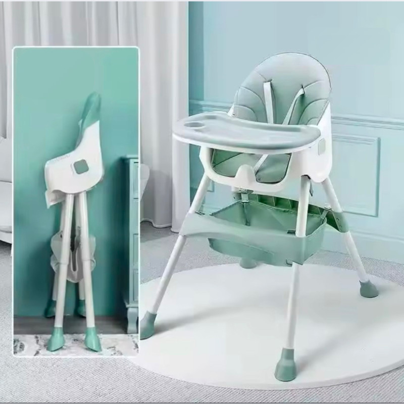 كرسي طعام للاطفال يحتوي على 3 مستويات قابل للطي مع طاولة طعام قابلة للازالة وسهلة التنظيف متعدد الاستخدامات - اخضر