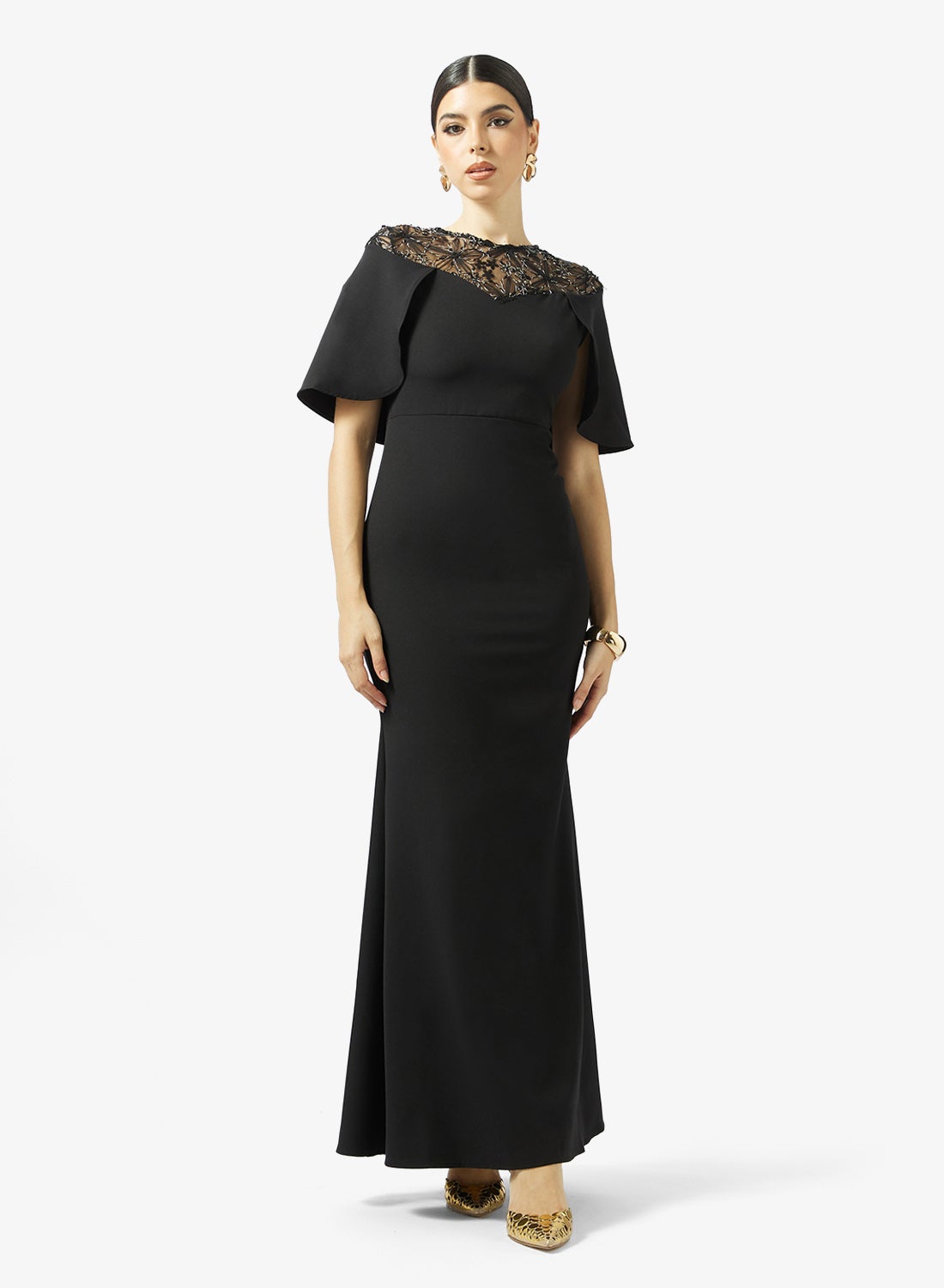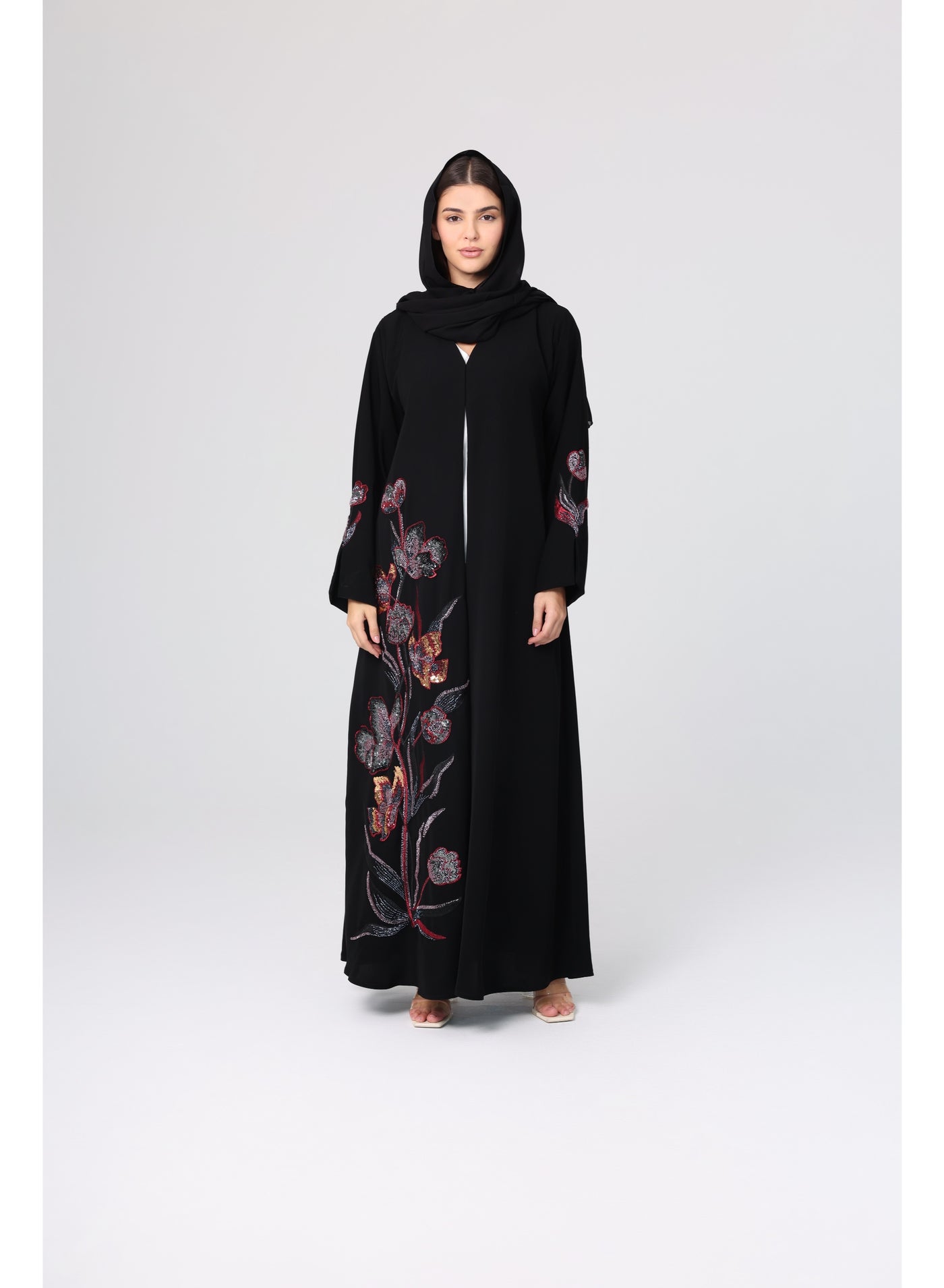 عباية فاخرة مطرزة بالخرز الملون أسود