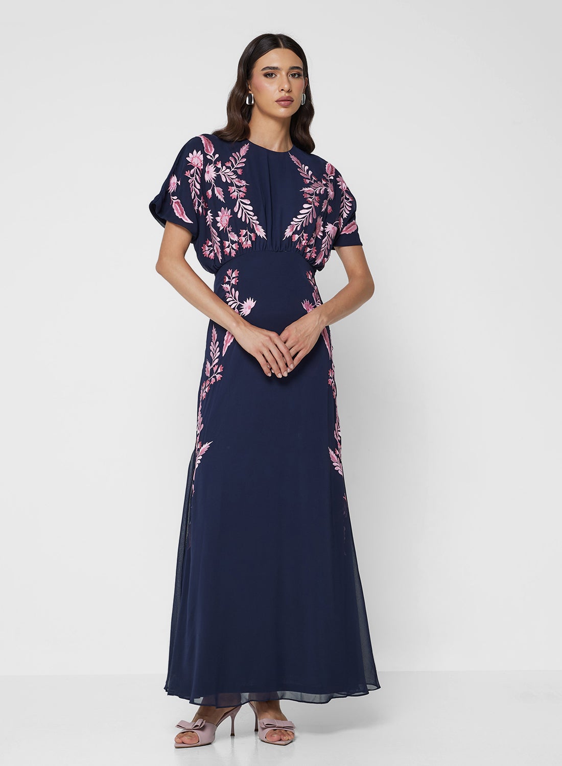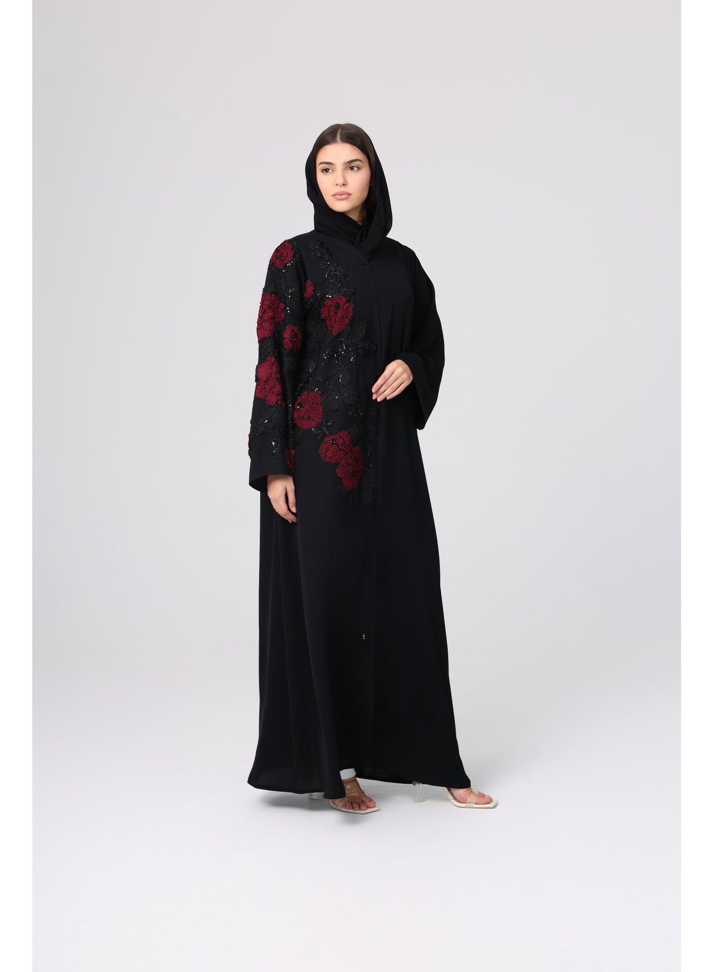 عباية مطرزة بالورود الحمراء والخرز أسود