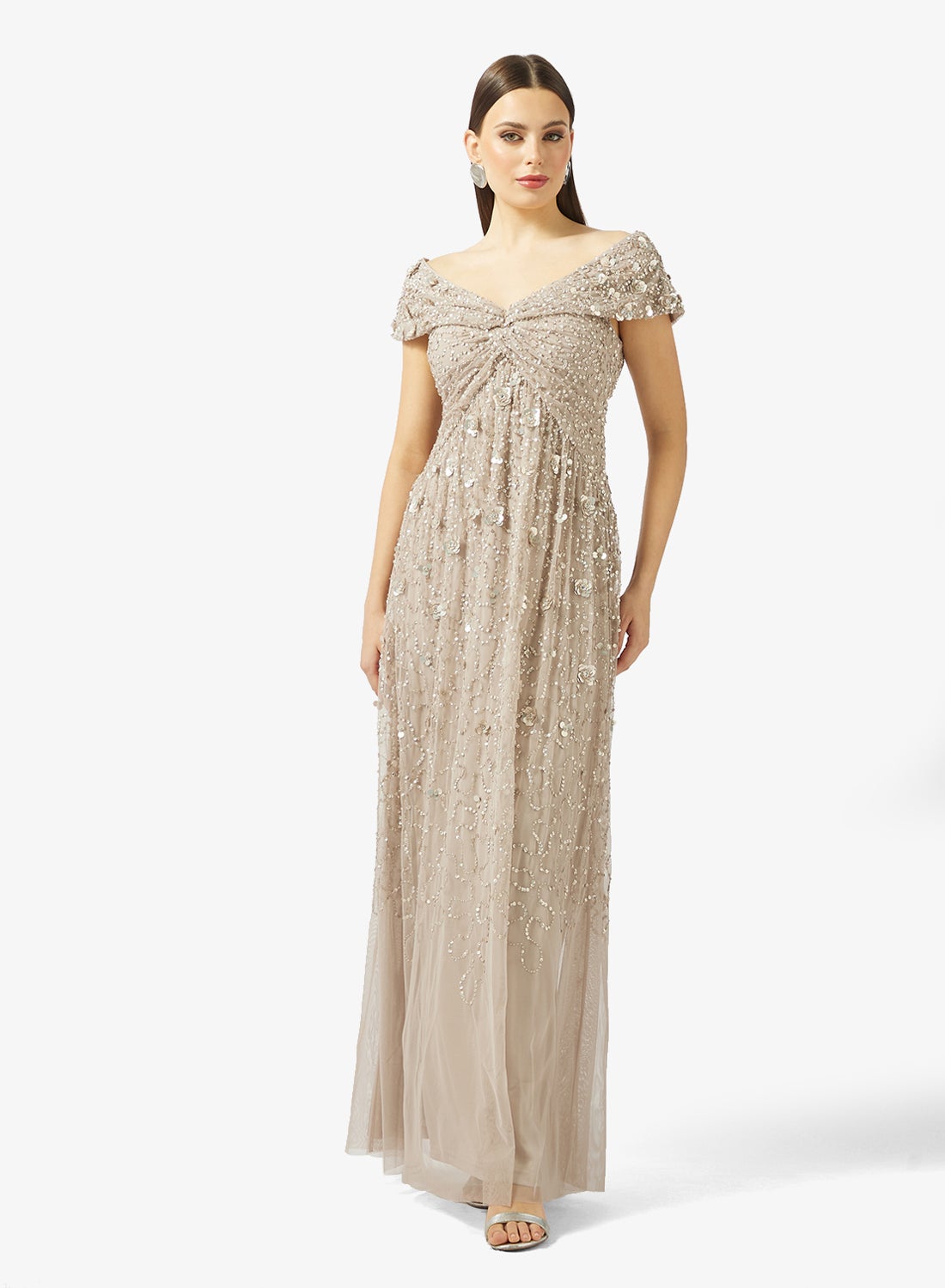 فستان سهرة مطرز بالزهور ثلاثية الأبعاد بأكمام كاب