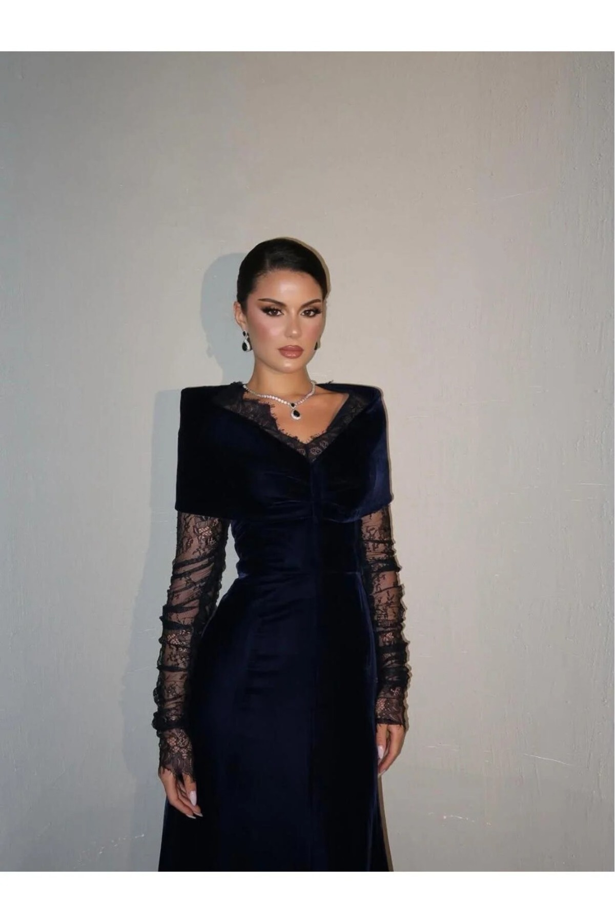 فستان سهرة أنيق شتوي لون كحلي