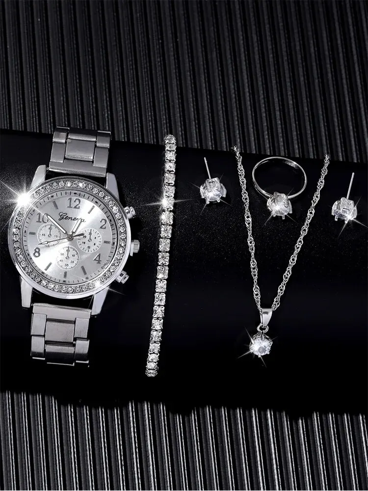 1. ساعة يد نسائية كوارتز طقم قطعتين