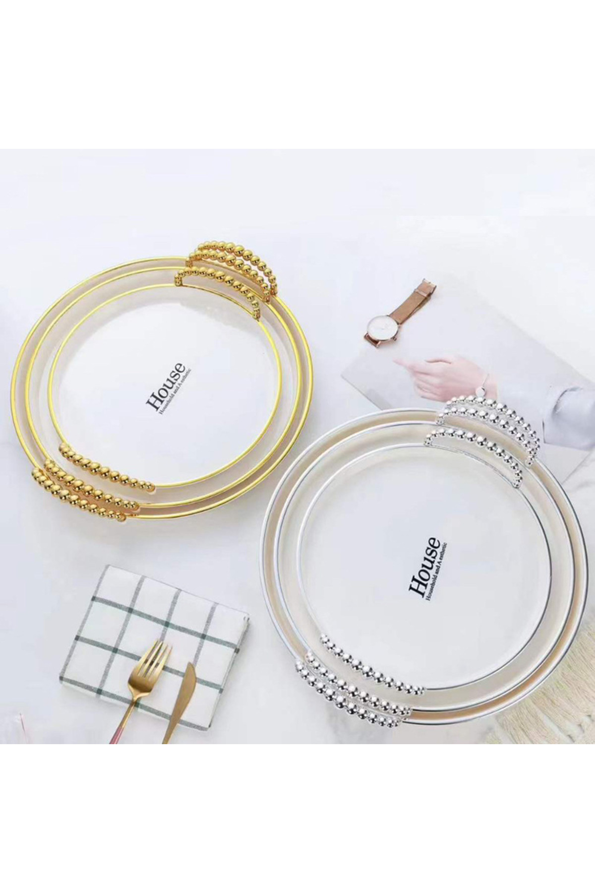 طقم صواني تقديم دائرية أكريليك 3 قطع لون أبيض بمقابض ذهبية