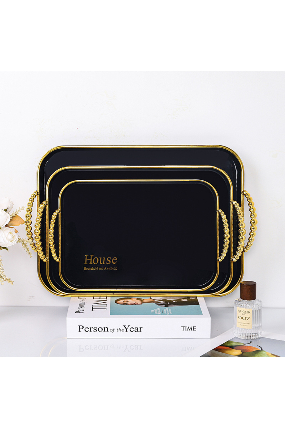 طقم صواني تقديم 3 قطع أسود بمقابض ذهبية – أكريليك/بلاستيك متين