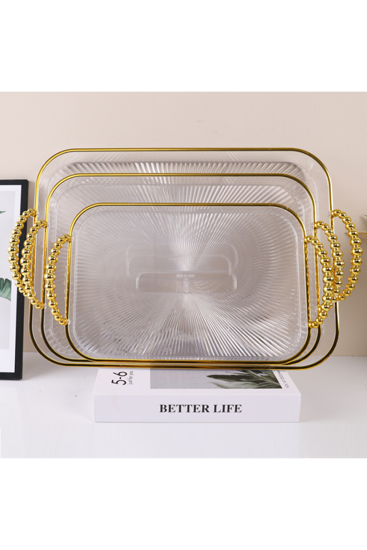 طقم صواني تقديم أكريليك 3 قطع لون كريم بمقابض ذهبية