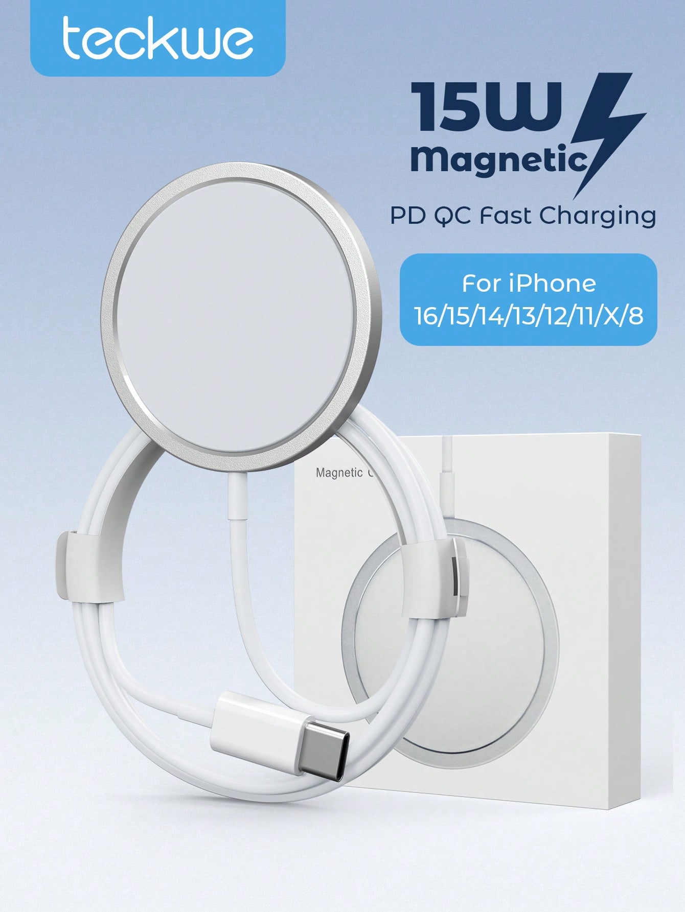 شاحن لاسلكي مغناطيسي سريع 15 واط لأجهزة آيفون 17/16/15/14/13/12/11 – أبيض