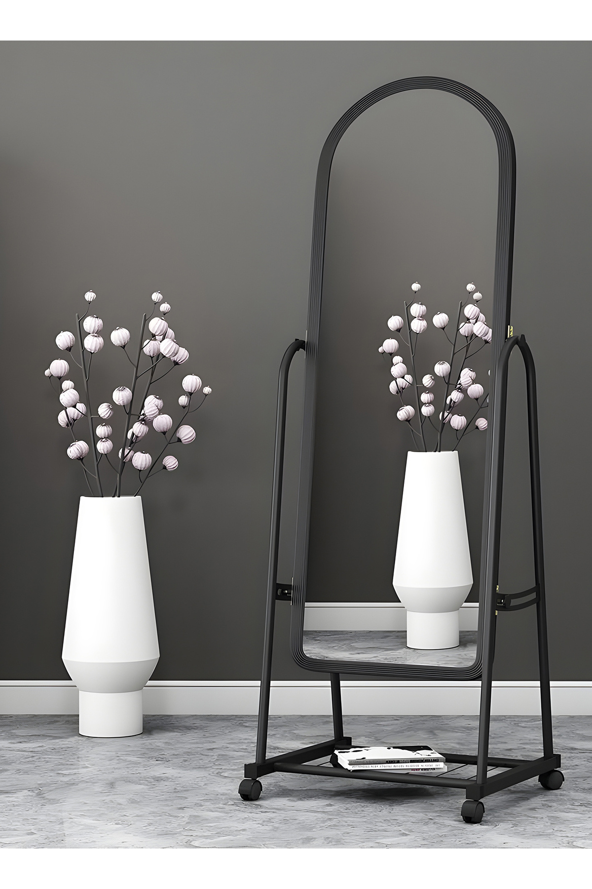 مرآة بسيطة وأنيقة مع حامل قوي، إطار أسود - 30 عرض × 158 طول سم