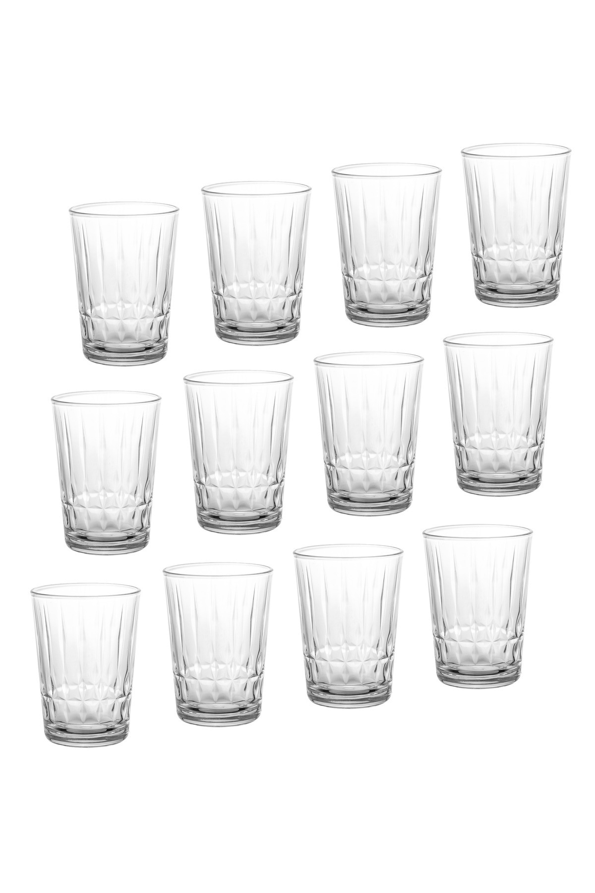مجموعة أكواب ماء وشاي تركي 12 قطعة – زجاج أبيض بتصميم أنيق