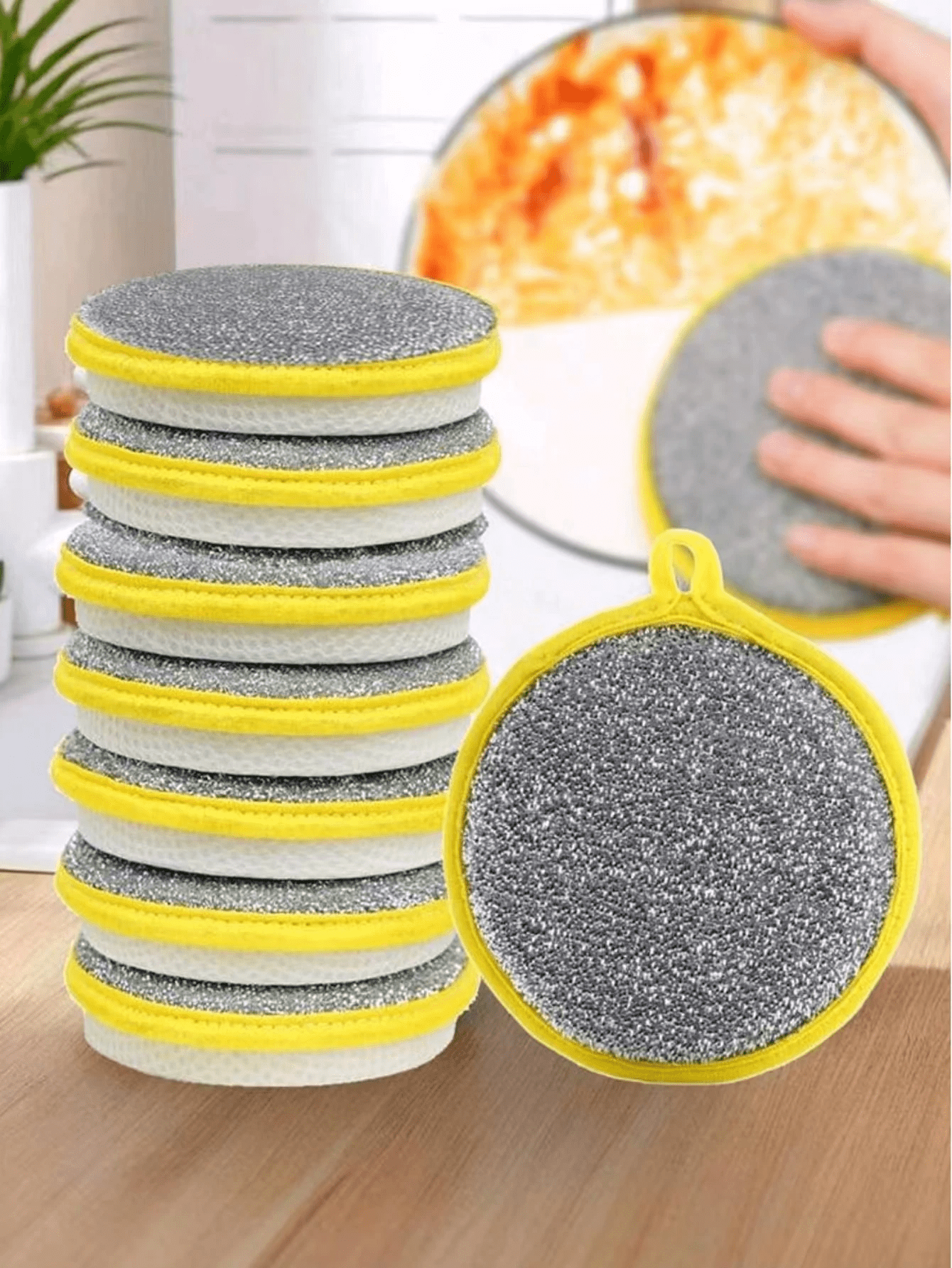 قطع إسفنج غسيل أطباق ذو وجهين مع منظف سلك فولاذي 10 قطع – إسفنجات تنظيف مطبخ طويلة الأمد وقابلة لإعادة الاستخدام