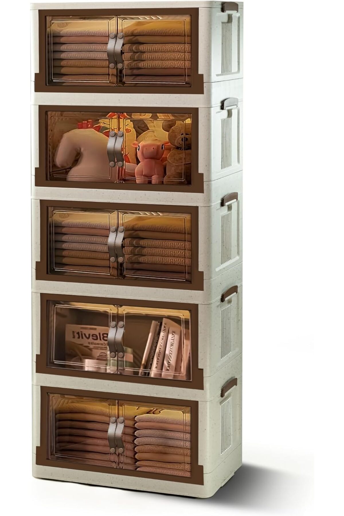 صندوق تخزين بلاستيكي قابل للطي 5 طبقات مع عجلات وأبواب – صندوق تخزين كبير جدًا مع غطاء وقابل للتكديس