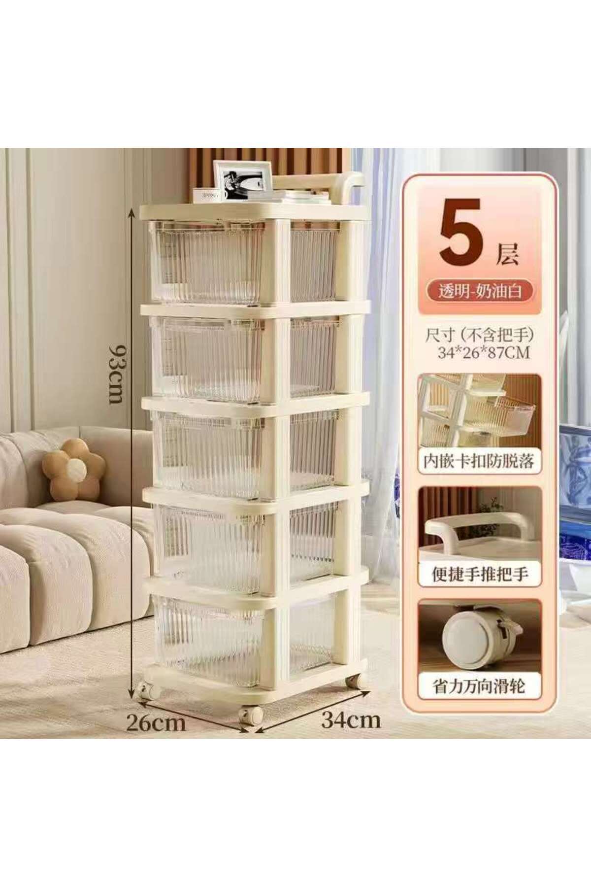 أدراج تخزين وتنظيم 6 رفوف متعددة الاستخدامات – مقاس 26 × 34 × 93 سم