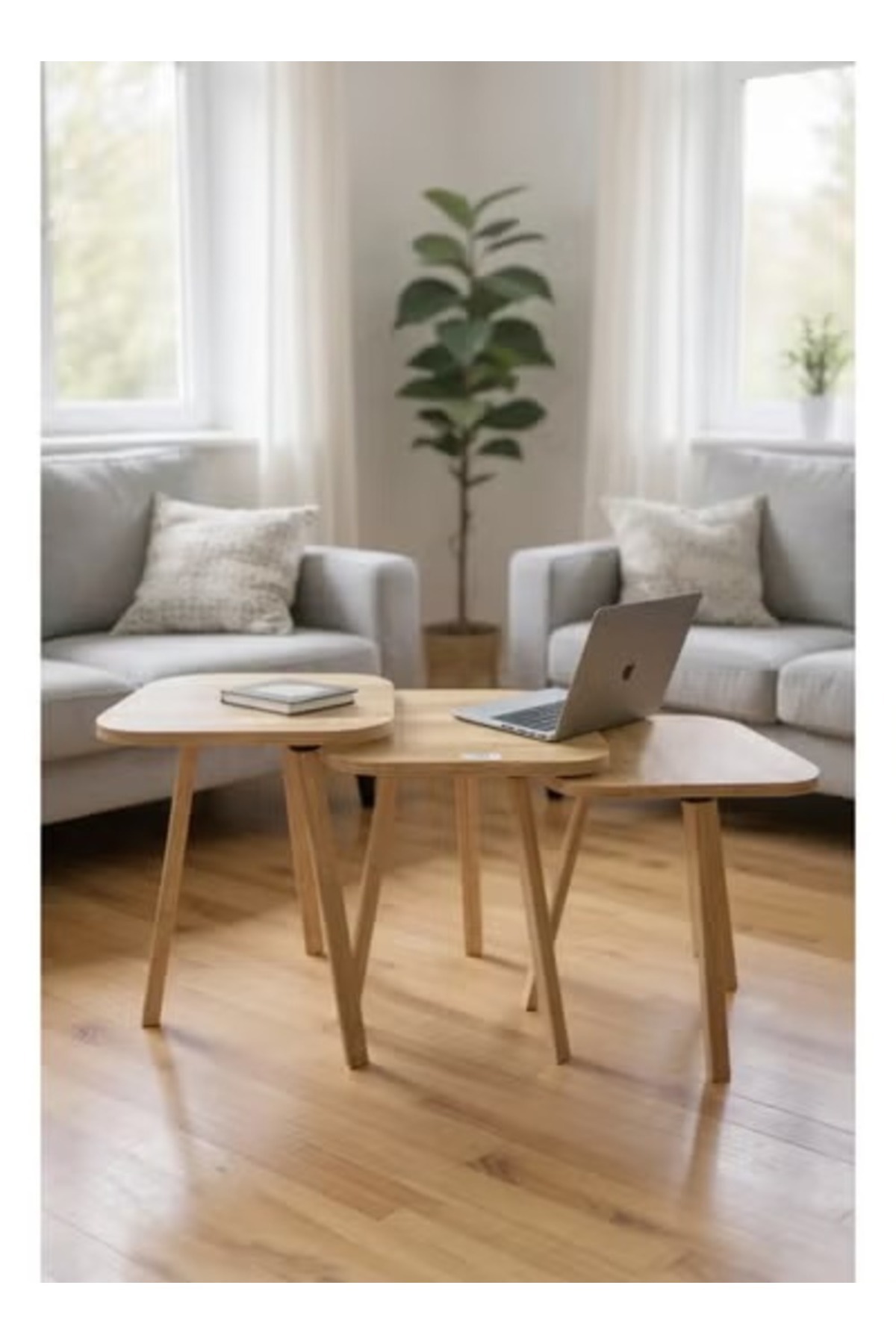 مجموعة من 3 طاولات خشبية مربعة متداخلة – تصميم عصري وموفر للمساحة
