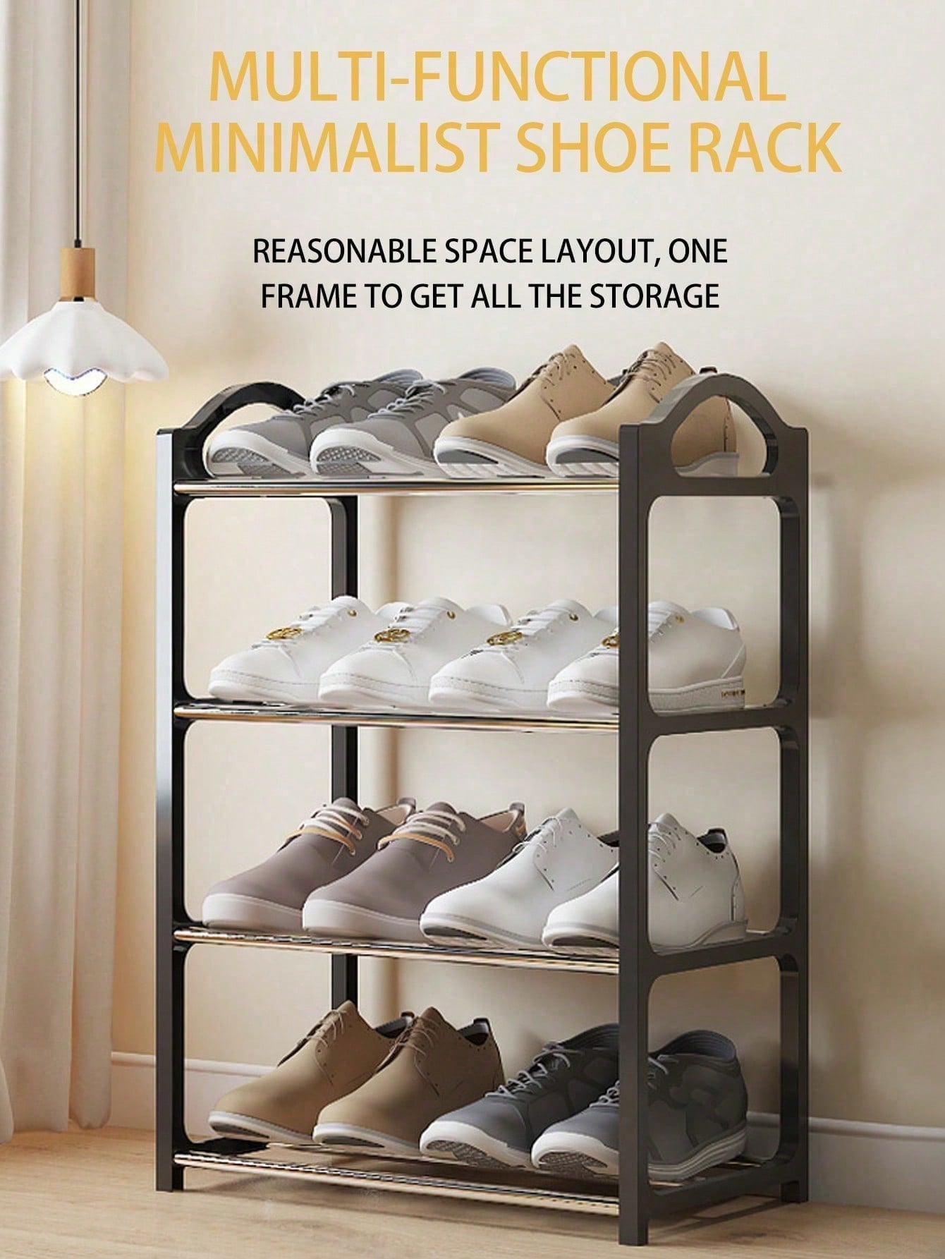 رف أحذية من 4 طبقات باللونين الأسود والأبيض، قطعة منزلية بسيطة لتخزين الأحذية في مدخل الغرفة أو السك