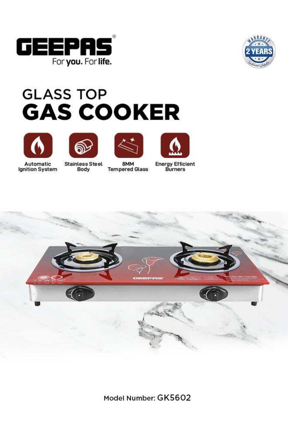 موقد غاز مزدوج الشعلات بسطح زجاجي وإطار ستانلس ستيل مع إشعال بيزو تلقائي