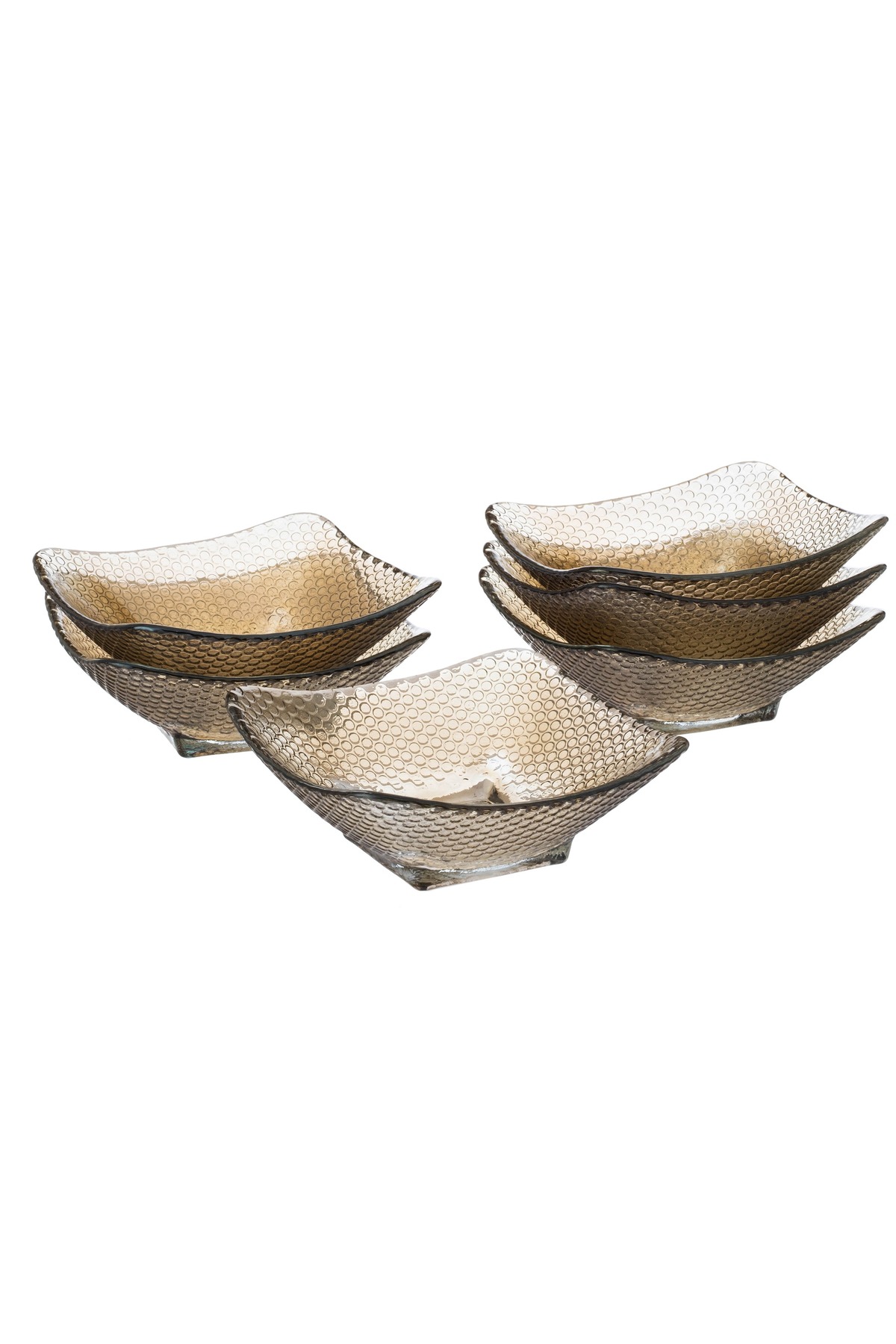 طقم 6 كاسات تركية مربعة زجاج باللون العسلي للحلوى والفواكه والمكسرات – مقاس 12×12 سم