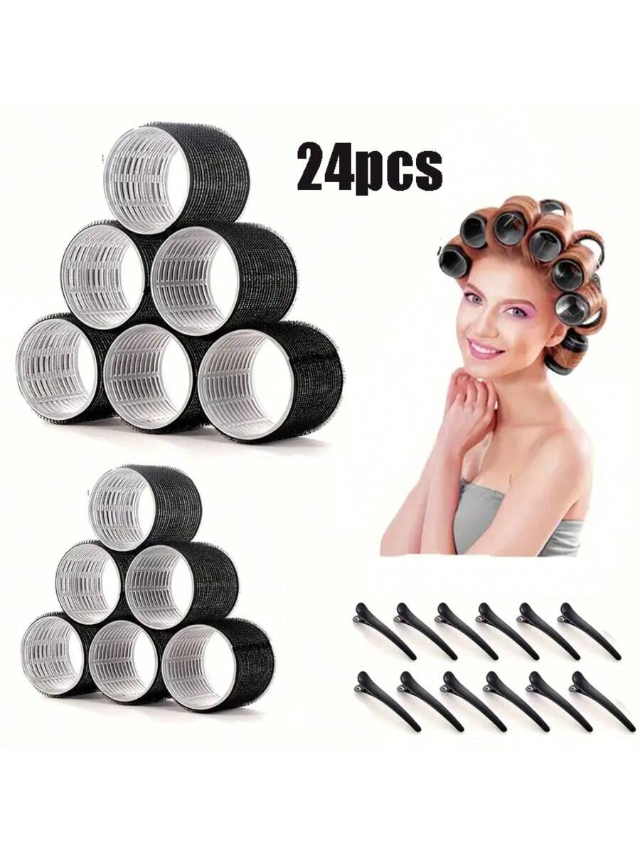 6/12/24 قطعة/مجموعة طقم أسطوانات قابضة ذاتية مع 12 أسطوانة و12 مشبك، لفافات ذات جودة صالون للتصفيف ا