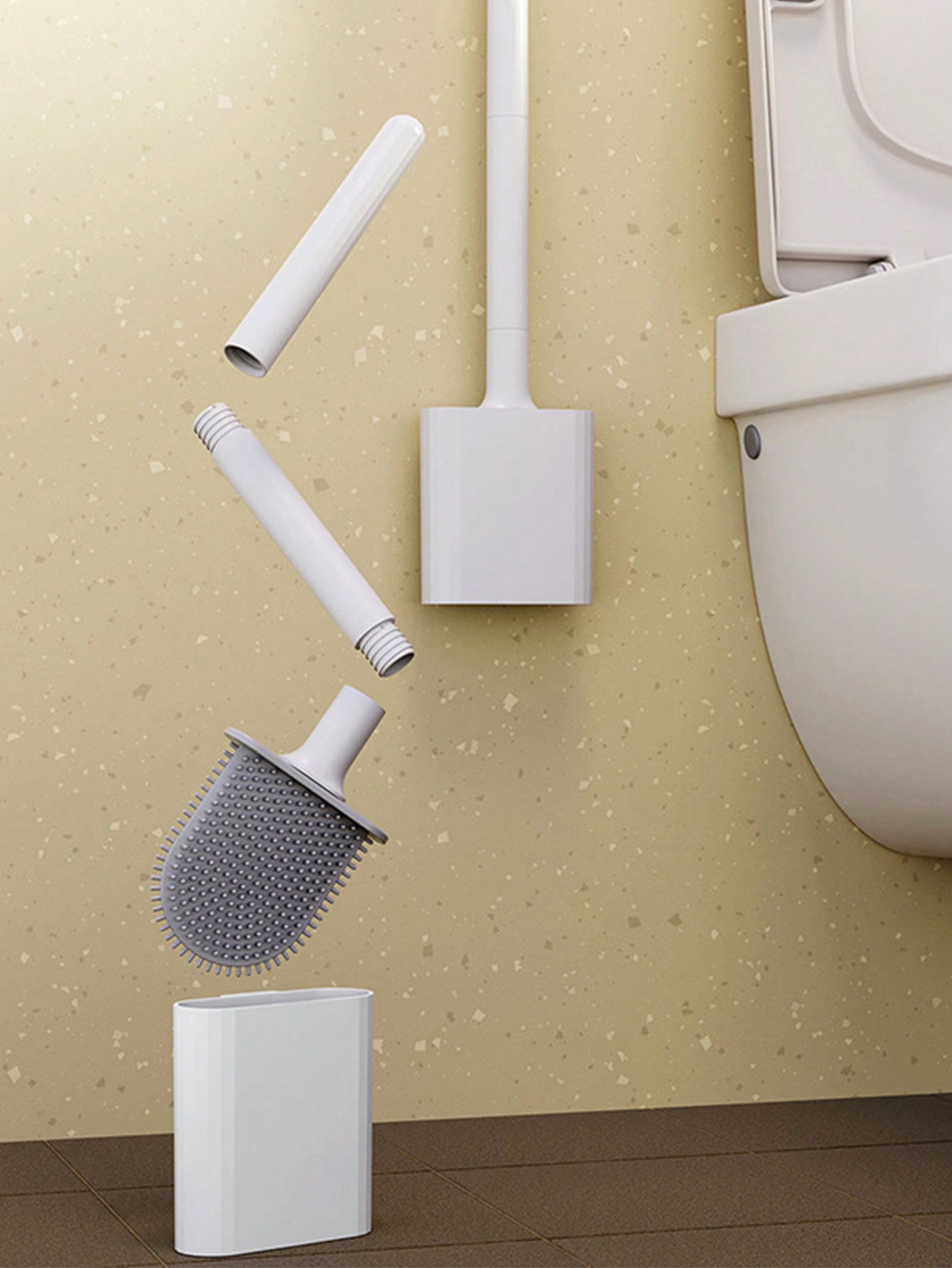 فرشاة مرحاض سيليكون ناعمة بمقبض قابل للفصل – فرشاة مثبتة على الحائط بدون نقاط عمياء