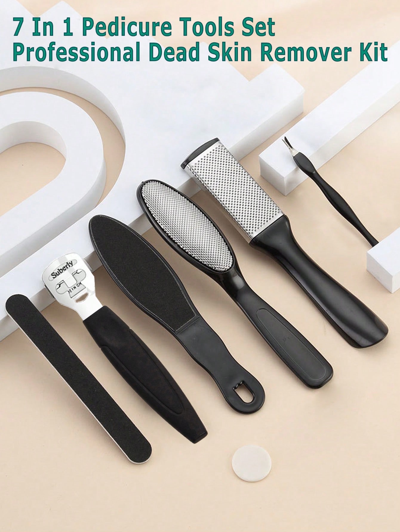 طقم باديكير أسود 7 قطع لإزالة مسامير القدم والعناية بالقدم متعدد الوظائف