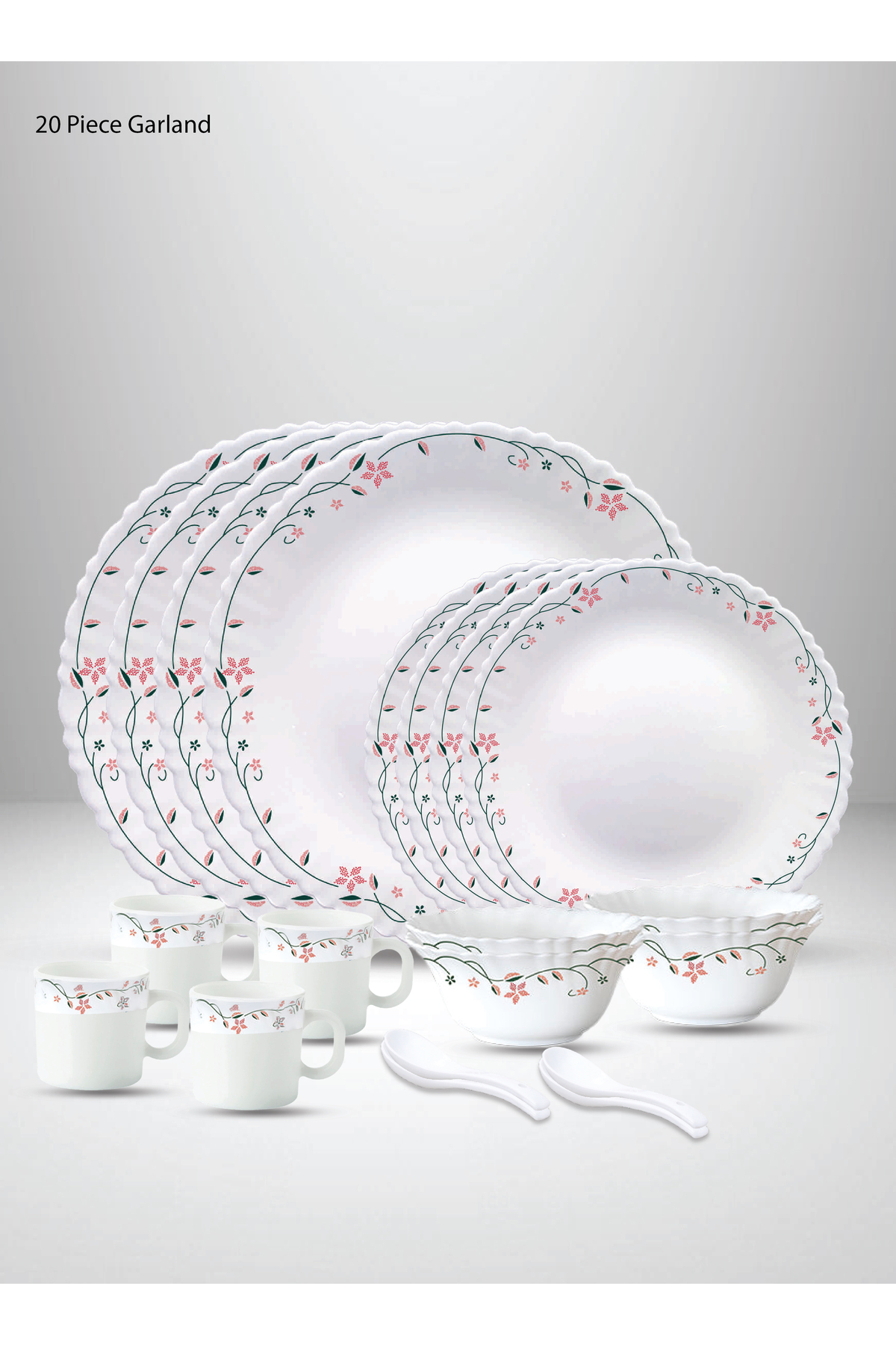 طقم عشاء أوبال وير ٢٠ قطعة | آمن للاستخدام في الميكروويف وغسالة الأطباق والفريزر | طقم عشاء جارلاند